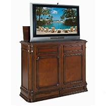 Discount price for Import Advantage Crystal Pointe Stained TV console with lift The TV and all audio-visual equipment are completely controlled when out of sight and without ever opening the