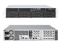 Supermicro SYS-6026T-URF G200eW Graphics ControllerLAN: Intel 82576 Dual-Port Gigabit Ethernet Controllers; 1x Realtek RTL8201N PHY (dedicated IPMI)Drive Bays: 8x 3.5"" SAS / SATA Hot-swap Drive BaysBackplane: 1x 2U SAS / SATA backplane Ports: 8x USB 2.0 Ports(4 rear, 4 by header); 1x VGA Port; 2x PS/2 Ports; 1x Serial Port; 2x RJ45 LAN PortsForm Factor: 2U RackmountPower Supply: 720W (1+1) Redundant high-efficiency Power Supply, w/ PMBusSystem Cooling: 3x 80mm 6300 RPM fans, 1x Air ShroudColor: BlackDimensions (WxDxH): 17.2 x 25.5 x 3.5 inch / 437 x 648 x 89 mmWeight: 55 lbs / 24.9 kgRoHS Compliant ...